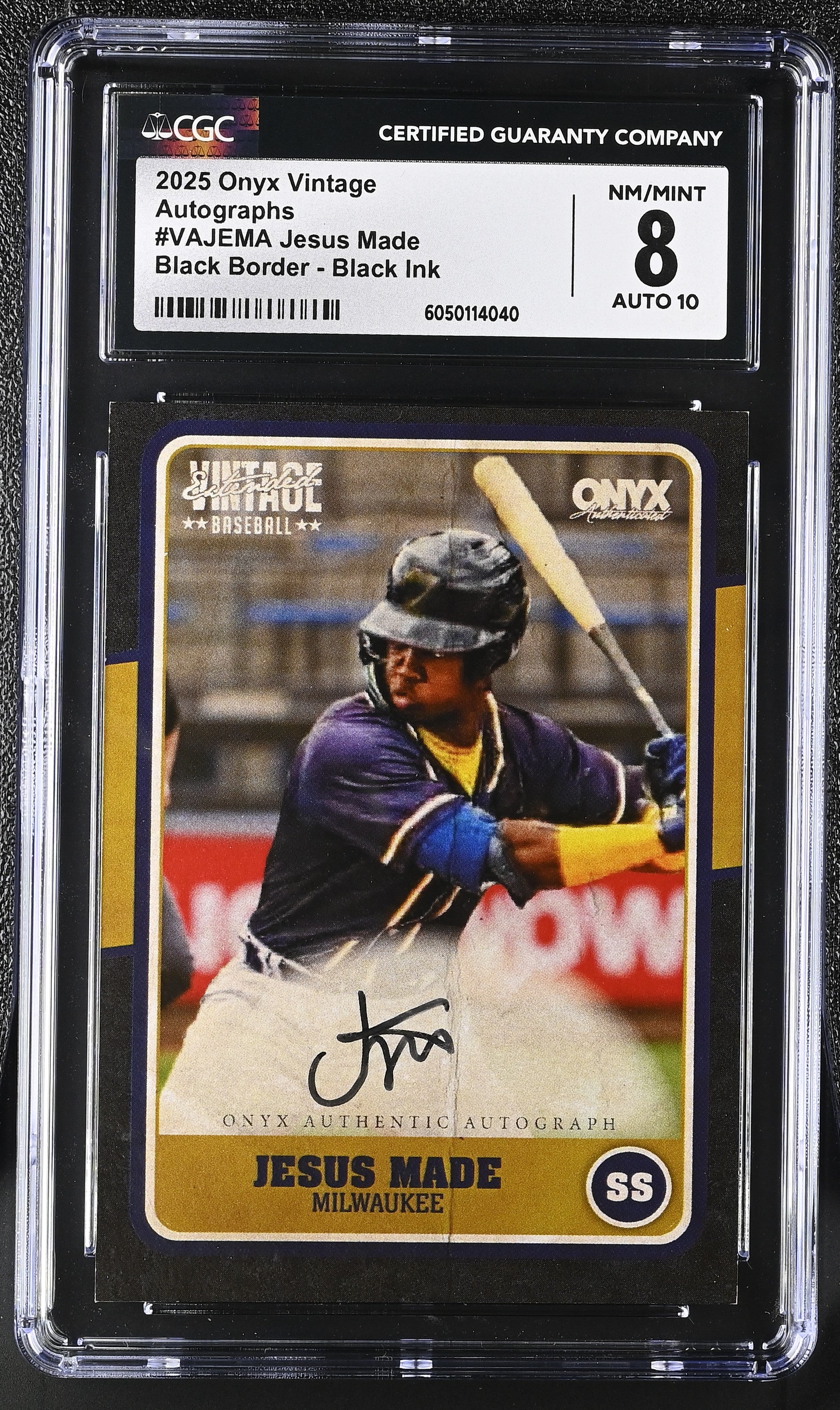 This is a nice example of a 2025 Vintage #VAJEMA Jesus Made Autographs Other important information about this card:CGC 8 1Black Border - Black InkIn 2025 Jesus Made played for the .Please check out our other listings for more great cards.